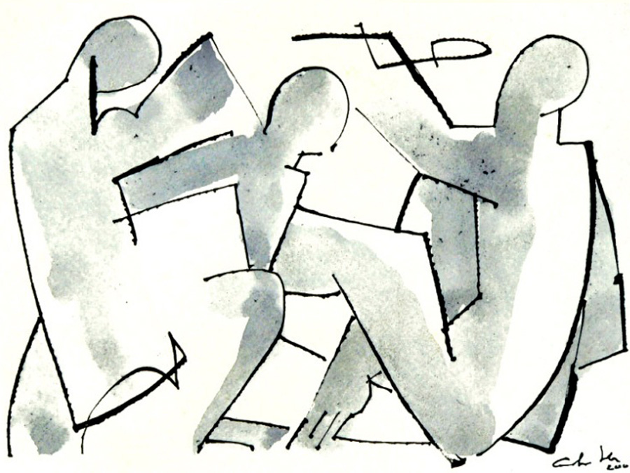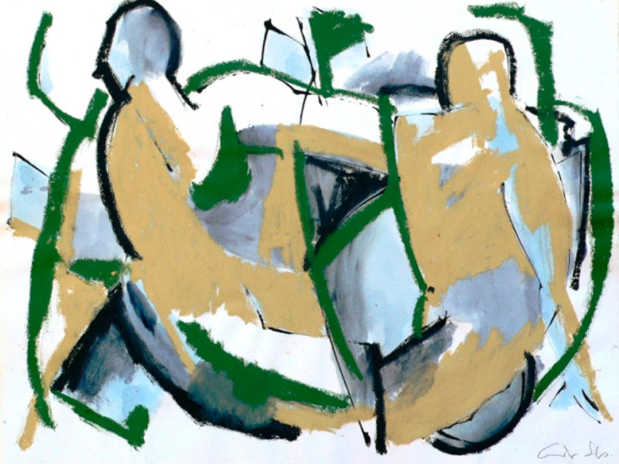 De l'arrelament al seu entorn, al seu poble, a la seva gent, neixen els xeremiers, els borratxos, els músics, els níns, fruits d'una cultura allunyada d'erudiccions i academicismes convencionals, d'un concepte d'amor i sexe entès, pot-ser a la manera de'n Miller, com un element alliberador de la conciència de l'individu, surten les seves figures amants, línies subtils i lleugeres, insinuants, desitjables i anyorades formes que volen amagar darrera la seva aparent simplicitat el més primitiu dels sentiments, conjugant el binomi amor-sexe sense ambigüetals. D'una actitut lúdica prenen forma amagades darrera la simplesa d'unes linies les seves figures de festa, ballarins embriagats de moviment i goig, subtils insinuacions, rostres indefinibles.